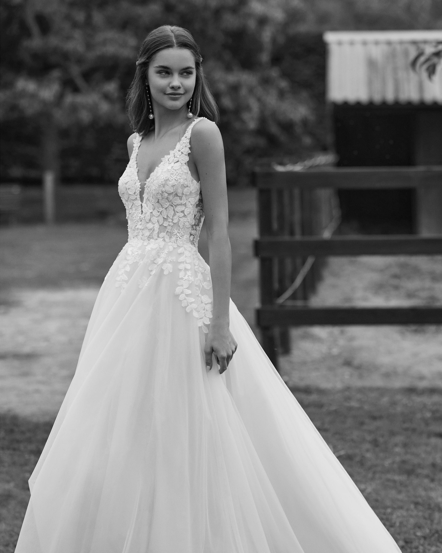 Ob schlichte Linien, aufwendige Spitzenarbeiten oder moderne Silhouetten – die Kollektionen von Rosa Clará bieten eine vielfältige Auswahl an Stilen. Von romantischen A-Linien-Kleidern über elegante Fit-and-Flare-Modelle bis hin zu raffiniert minimalistischen Designs – bei Gerda Blum findet jede Braut das Kleid, das ihre Persönlichkeit unterstreicht.