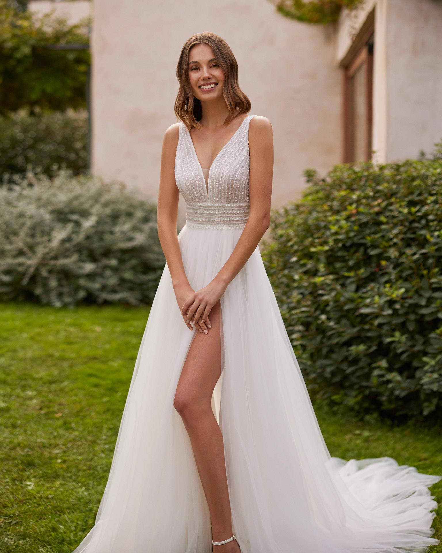 Seit Jahrzehnten begeistert Rosa Clará Bräute weltweit mit einem einzigartigen Stil, der klassische Eleganz mit einem Hauch von Avantgarde vereint. Die Kleider zeichnen sich durch luxuriöse Stoffe, präzise Schnitte und filigrane Details aus – ideal für Bräute, die stilbewusst und anspruchsvoll sind.